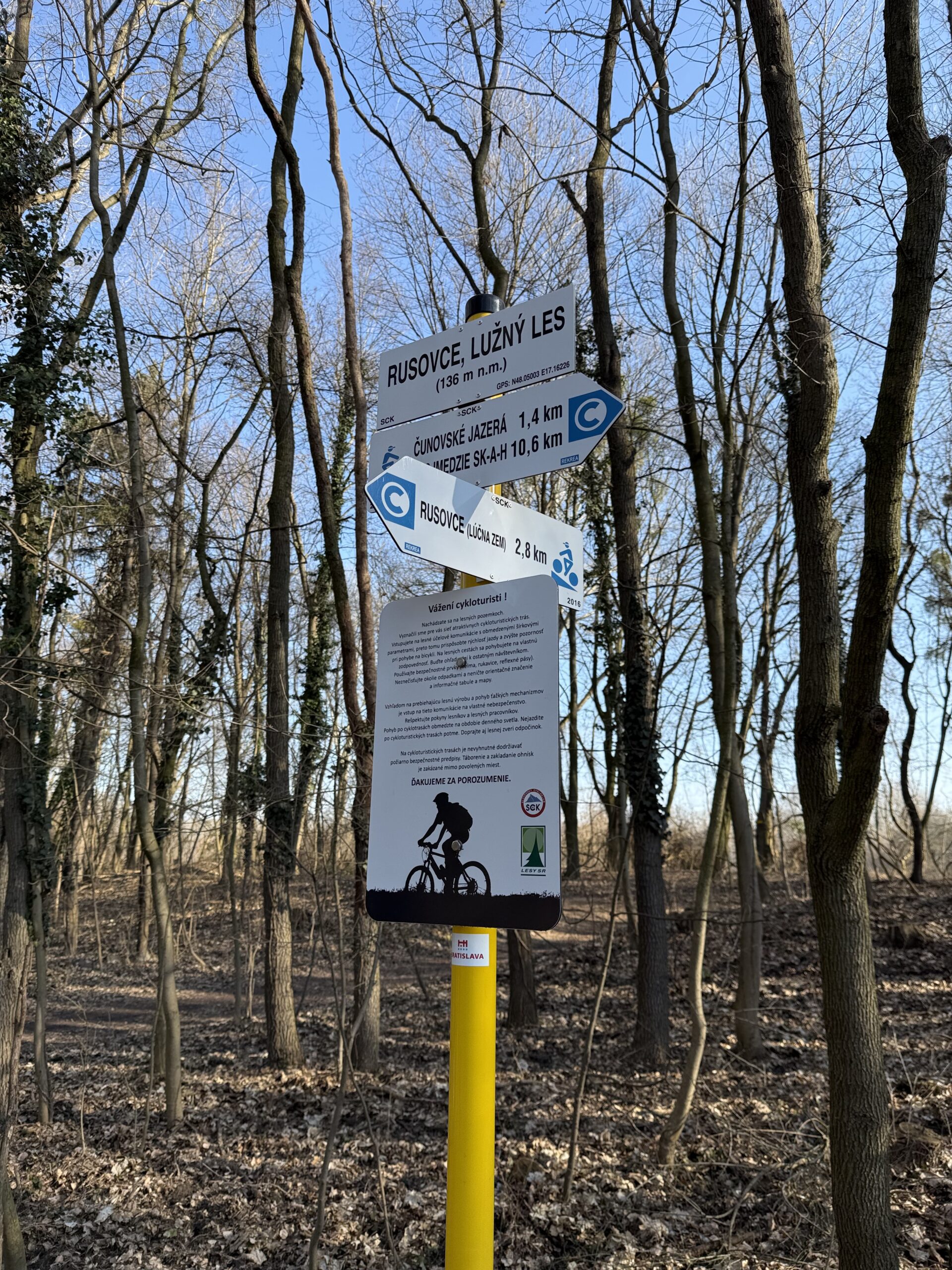 Popis: Táto modrá trasa začína v mestskej časti Bratislava – Rusovce, v lokalite Lúčna zem neďaleko dunajského ramena, kde cyklistov privíta pokojné prostredie lužnej prírody. Úvodný úsek vedie príjemnými cestami. Trasa postupne míňa železničnú trať a smeruje ku Gaštanovej aleji v obci Rusovce a ďalej do oblasti Lužný les, známej svojou bohatou biodiverzitou a tichou atmosférou. Trasa prechádza cez zeleň a lužné lesy, ktoré poskytujú tieň aj počas teplejších dní.