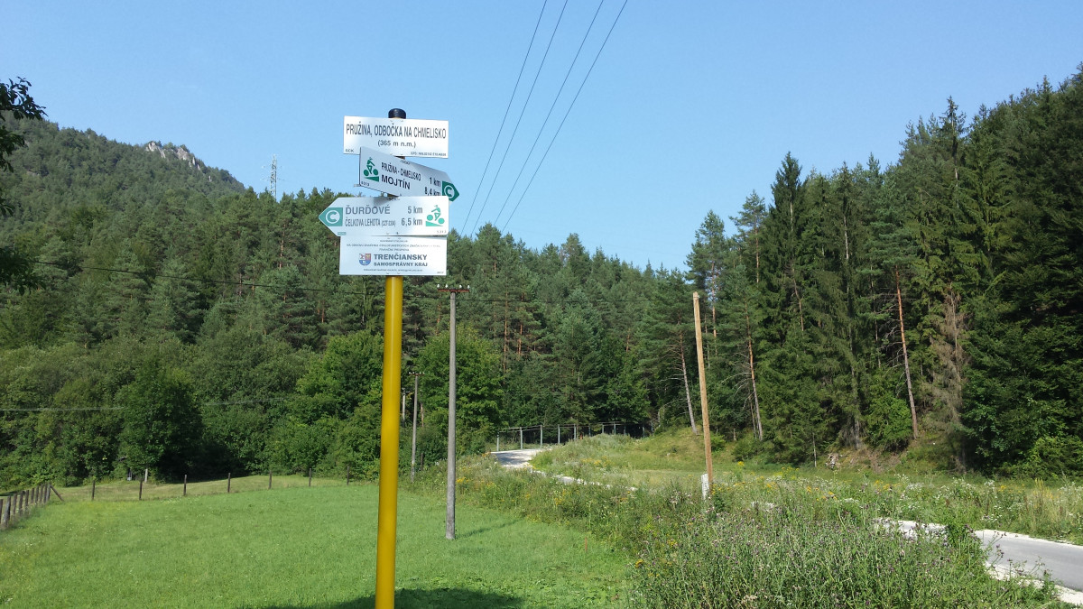 Popis: Trasa začína na križovatke s modrou cykloturistickou trasou (2304 – Považská Bystrica – Domaniža) nad obcou Čelkova Lehota pri krásnom výhľade. Hneď v úvode nás čaká zjazd po rozbitej asfaltovej ceste do dedinky Ďurďové, kde sa napájame na asfaltovú cestu a po nej pokračujeme až do obce Pružina. Na chvíľu sa opäť stretáme s modrou cykloturistickou trasou. Na začiatku Pružiny sa zelená trasa dáva doprava. Tu prechádzame cez miestnu časť Chmelisko, kde sa hneď pri ceste nachádza krásna zvonička. Podobnými zvonicami je známa obec Pružina, nachádzajú sa tu štyri.