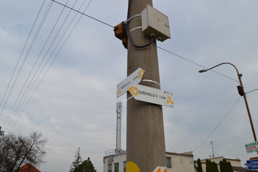Charakteristika: Krátka žltá cykloturistická trasa, ktorá tvorí odbočku z trasy EuroVelo 6 do obce Moča.